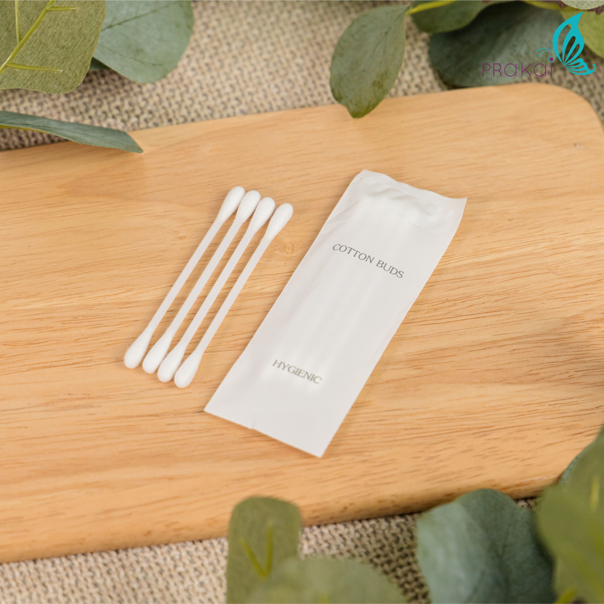 PRAKAIVANICH เซ็ตก้านสำลีโรงแรม 4 ก้าน 【แพ็ค 100 ชิ้น】สำหรับใช้ในโรงแรม ใส่ซองขาวขุ่น/กล่อง – cotton bud